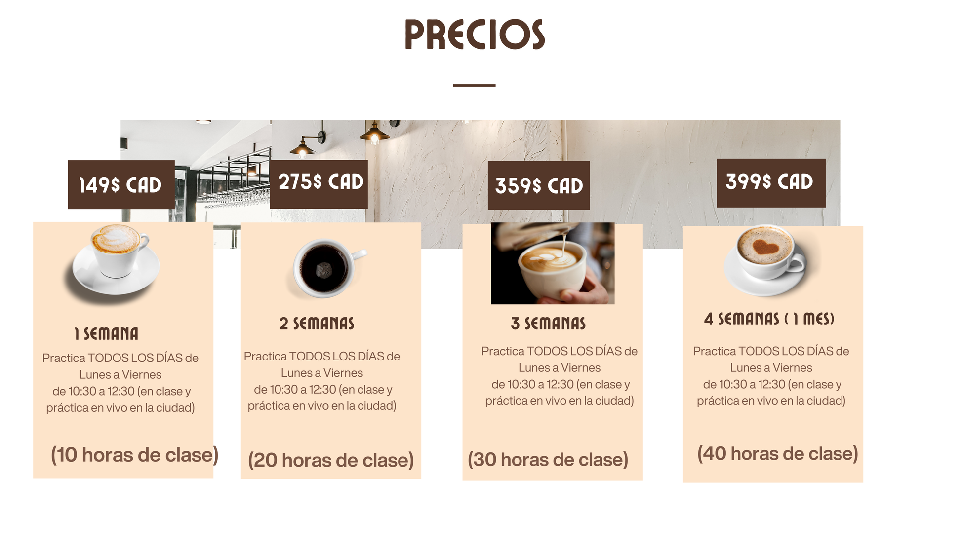 Al finalizar la práctica en clase, salimos en grupo a pedir un café ¡en español!, a hablar con los lugareños, a compartir un lunch en el parque o simplemente a hablar entre nosotros en una práctica de expresión oral (¡en español!). Priorizando las actividades gratuitas.